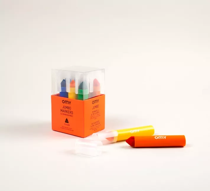 Maxi feutres pour mini kids ! 9 feutres à pointe géante conique faciles à prendre en main pour colorier, dessiner et faire de grands aplats (épaisseur de trait : 2-12 mm). Encre ultralavable à base d’eau qui ne tâche ni les mains, ni les vêtements (lavage 40°) Pratique, la boîte se transforme en pot à crayons à la maison!