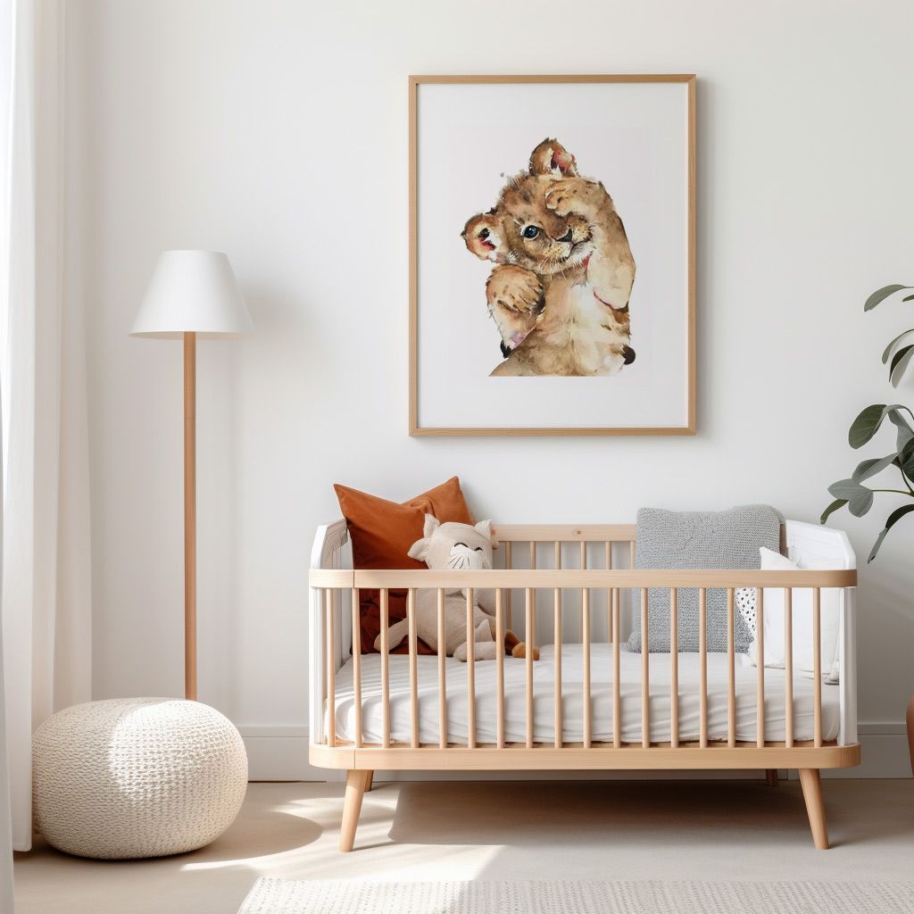 Affiche pour chambre enfant fabriquée en France 🇫🇷 Poster portrait bébé lion Impression numérique haute qualité avec des encres sans solvant Papier photo de haute qualité 275g/m2 (248 microns) Finitions satiné Cadre non inclus Expédition sous 5 à 8 jours ouvrés