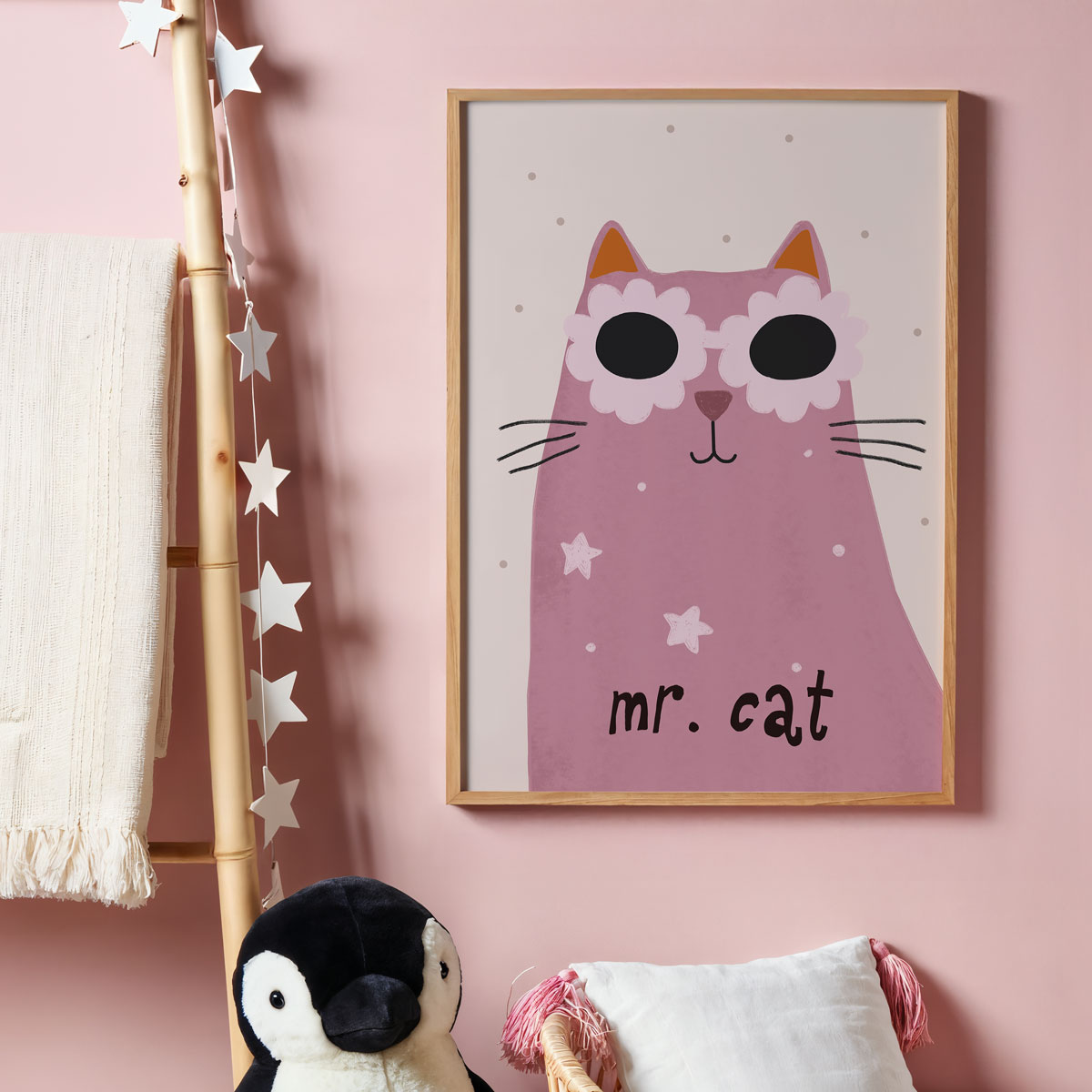 Ajoutez une touche de fun et de style à la chambre de votre enfant avec notre affiche « Mr Cat ».