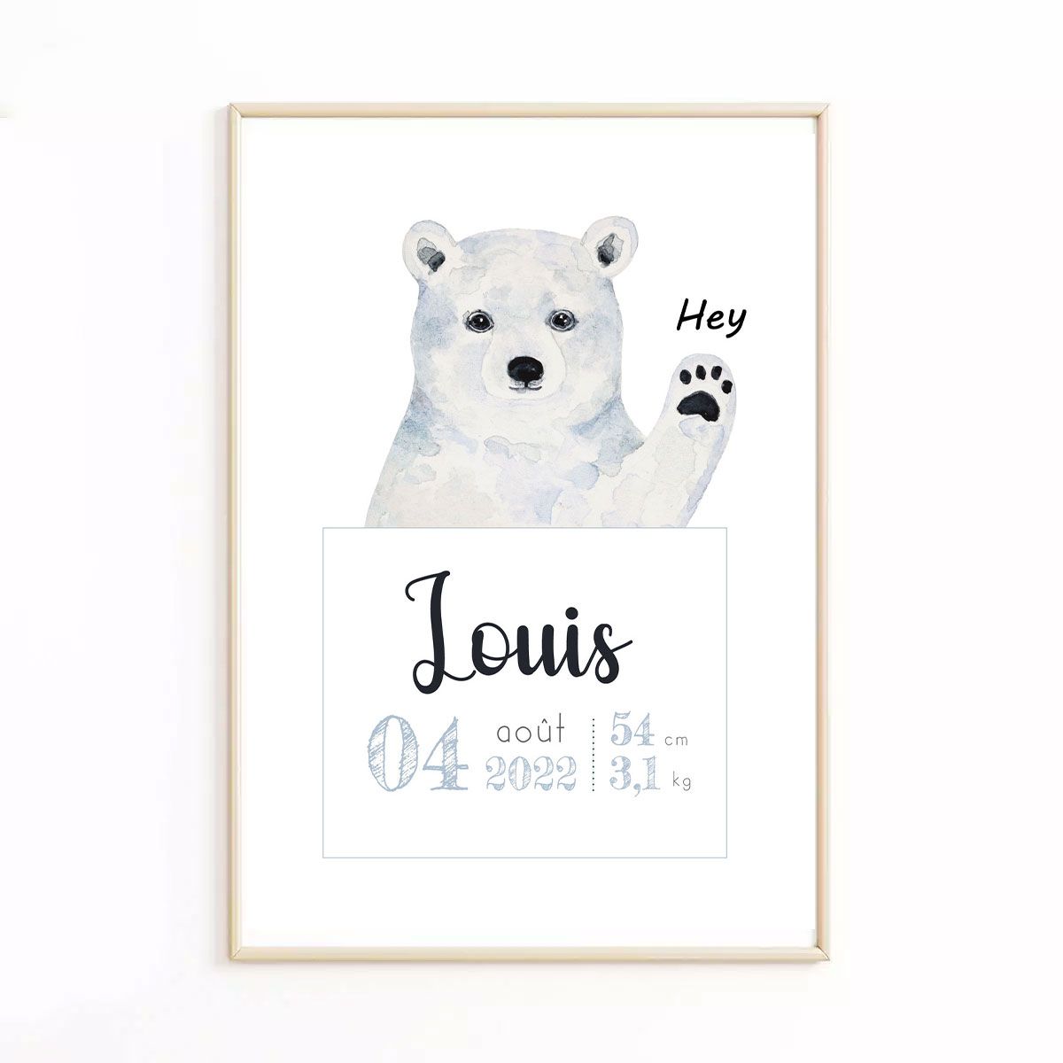 Poster de naissance pour bébé A4 ou 30x40cm ou 50x70cm Impression numérique haute qualité avec des encres latex Papier de qualité 220g/m2 Finitions mat Expédition sous 5 à 8 jours ouvrés