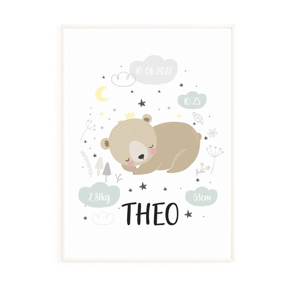 Poster de naissance pour bébé A4 ou 30x40cm ou 50x70cm Impression numérique haute qualité avec des encres latex Papier de qualité 220g/m2 Finitions mat Expédition sous 5 à 8 jours ouvrés