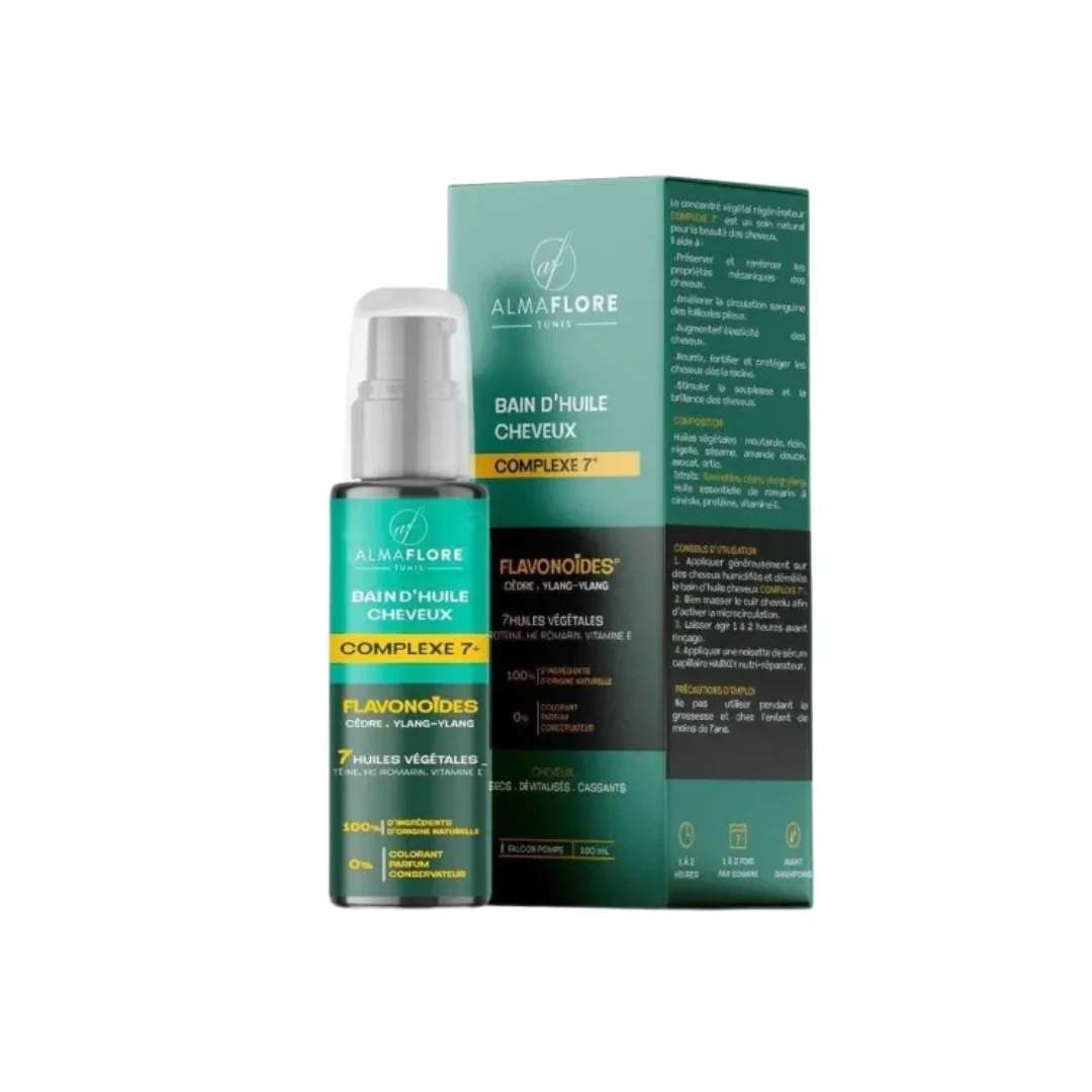 Le Bain d’Huile pour Cheveux ALMAFLORE est un soin capillaire complet, élaboré à partir d’un mélange d’huiles végétales naturelles spécialement sélectionnées pour nourrir, réparer et revitaliser les cheveux secs, ternes ou abîmés. Sa texture riche pénètre en profondeur pour restaurer la brillance, la souplesse et la force de la fibre capillaire dès la première utilisation.