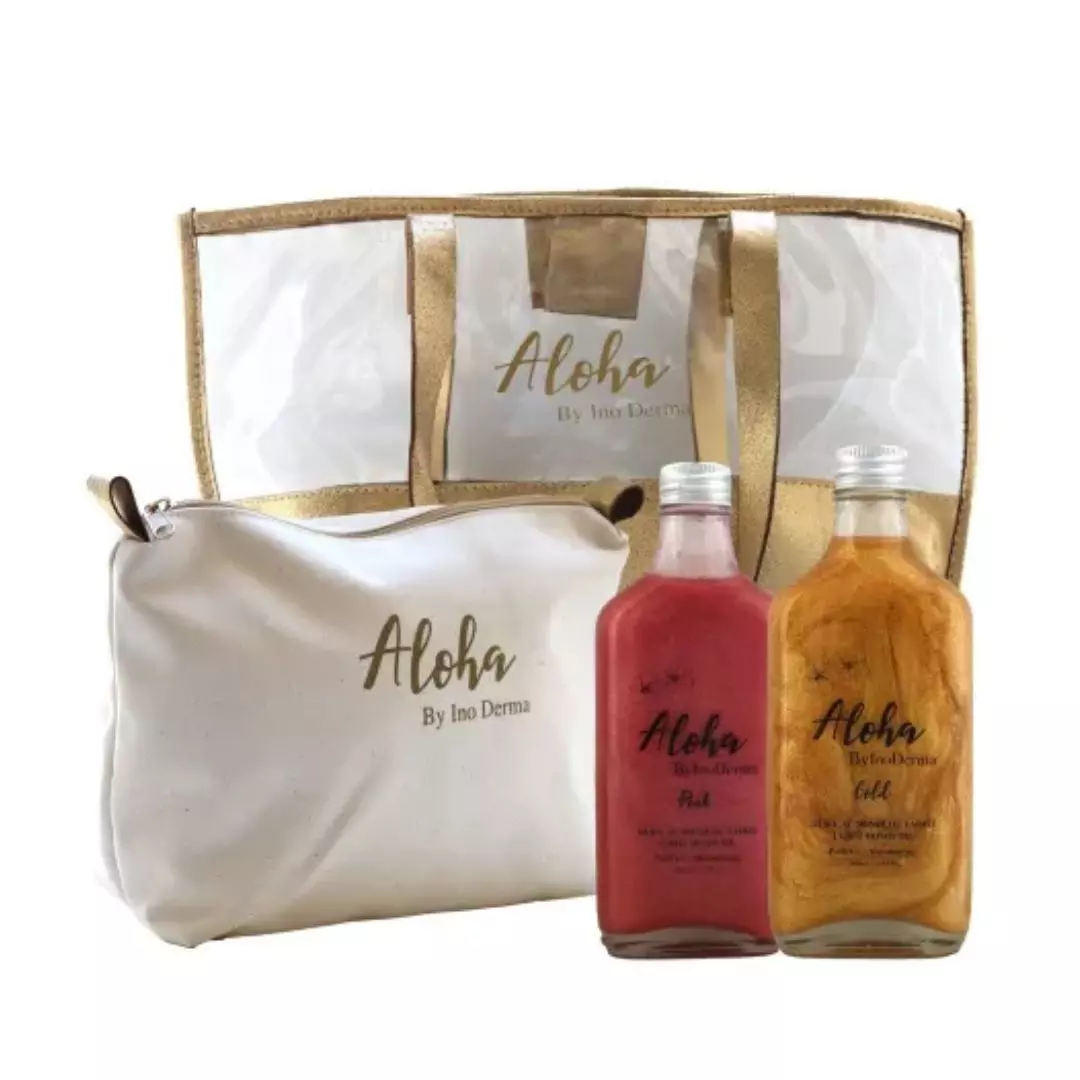 ALOHA PACK SUMMER BAG se compose de : *ALOHA BY INODERMA Huile au Monoï de Tahiti Pailletée PINK 100ML : Aloha est une huile au Monoï de Tahiti d’origine Polynésienne, obtenue grâce à la macération de fleurs de Tiaré dans l’huile de noix de coco. Dotée d’un parfum doux et envoûtant, Aloha est appréciée pour ses vertus hydratantes, adoucissantes et assouplissantes. *ALOHA BY INODERMA HUILE DE MONOI DE TAHITI Pailletée GOLD 100ML: Aloha est une huile au Monoï de Tahiti d’origine Polynésienne, obtenue grâce à la macération de fleurs de Tiaré dans l’huile de noix de coco. Dotée d’un parfum doux…