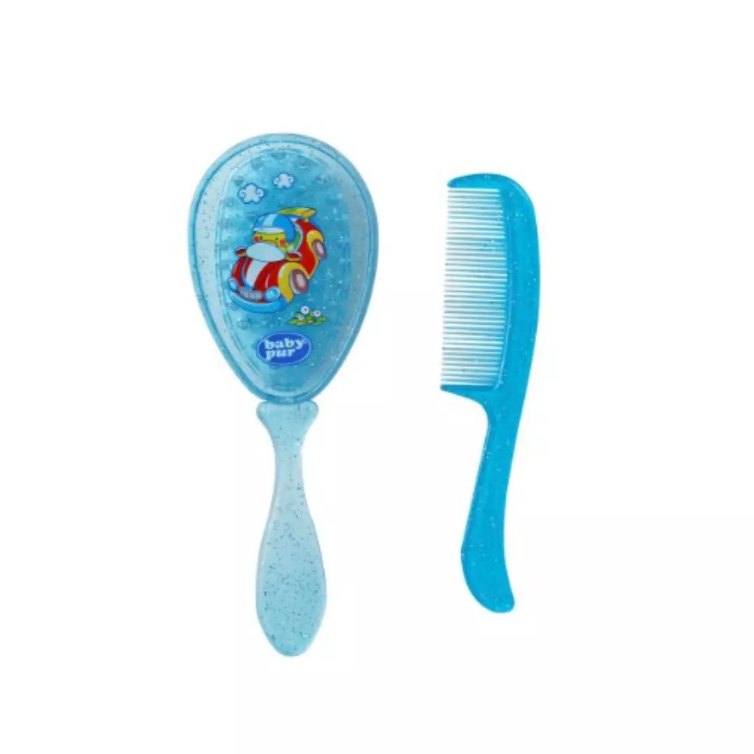 Brossez ou peignez les cheveux de votre tout-petit en toute sécurité en utilisant ce set de brosse et peigne décorés ! Motifs rigolos avec fond brillant. Set disponible en 3 coloris : bleu, rose et vert.