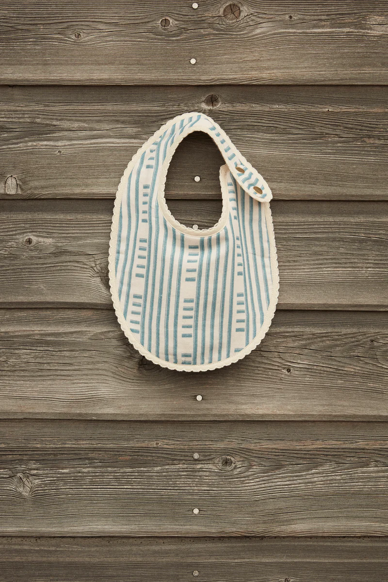 L’incontournable du trousseau de naissance : un ravissant bavoir doux et absorbant pour protéger bébé lors de ses premiers repas Recto en double gaze de coton 100% biologique Verso 100% absorbant en éponge écrue naturelle