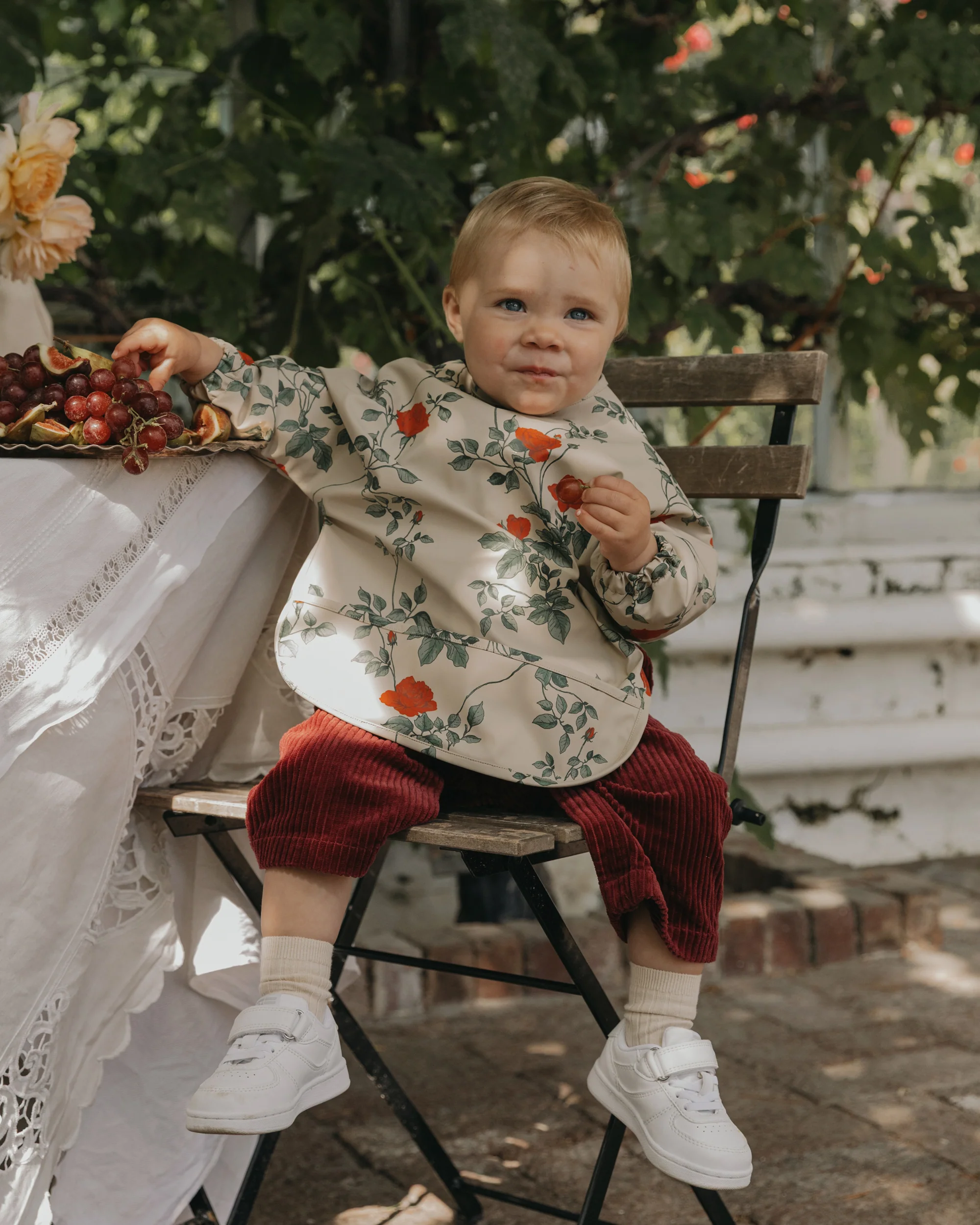 Bavoir Imperméable à Manches Longues Roses