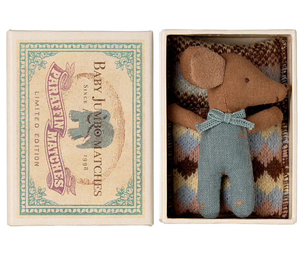 Un classique Maileg : cette souris mi-endormie/mi-éveillée est prête pour des heures de jeu et dormira au chaud dans sa petite boîte. Les vêtements et le linge sont fabriqués dans des tissus doux aux imprimés uniques.