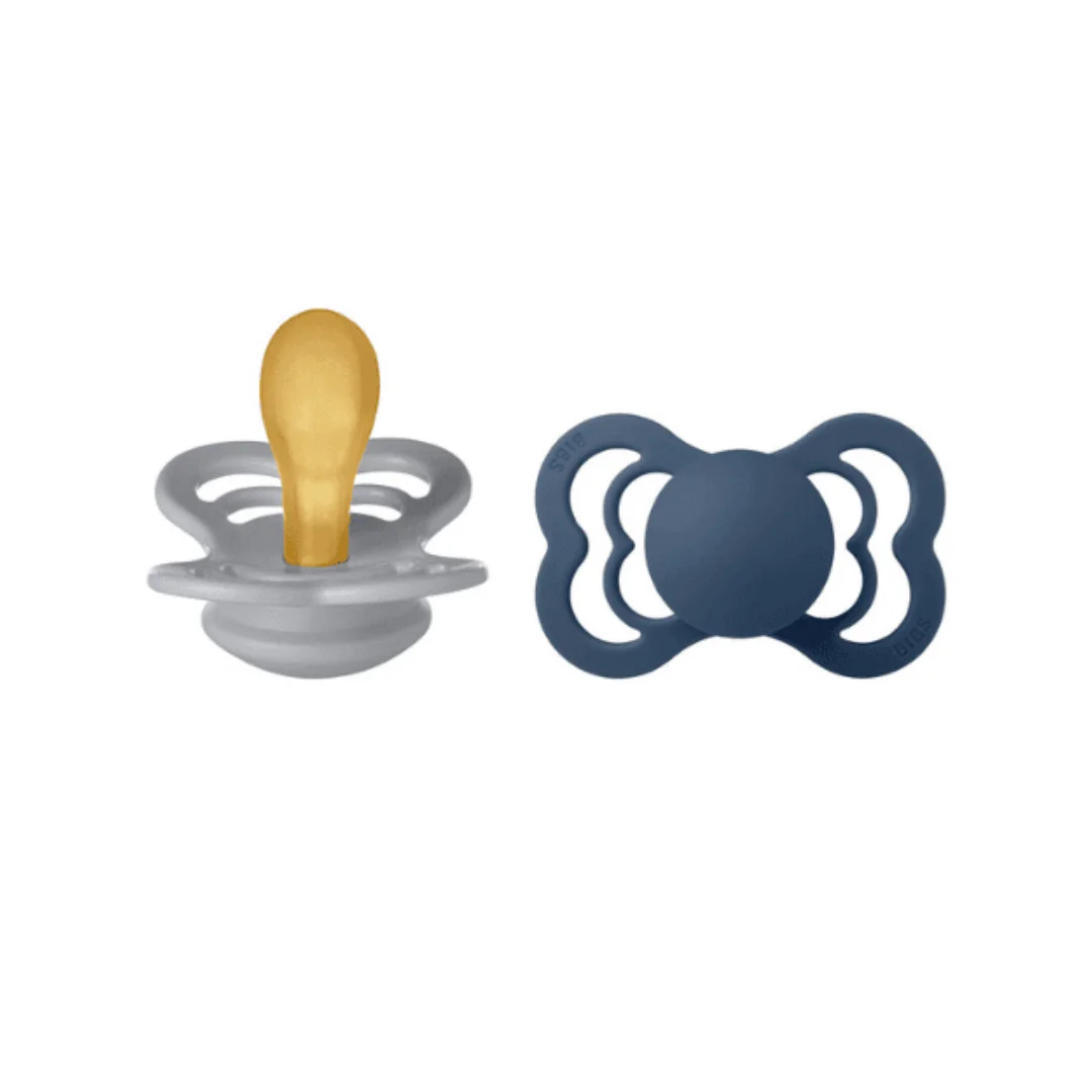 🎀 Contenu : 2 sucettes – coloris Cloud & Steel Blue