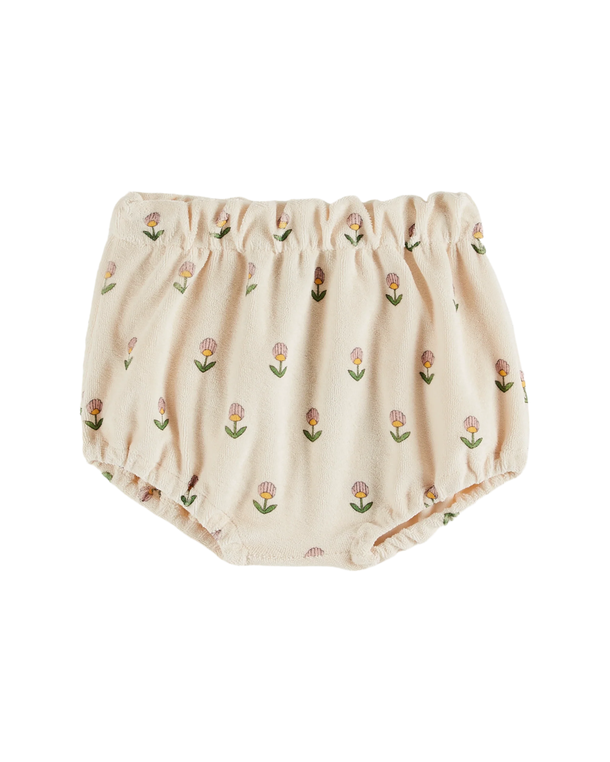 Confortable et pratique, ce bloomer en éponge écrue avec un imprimé de fleurs est parfait pour les journées actives des petits. Doux et léger, il offre une grande liberté de mouvement tout en restant stylé.