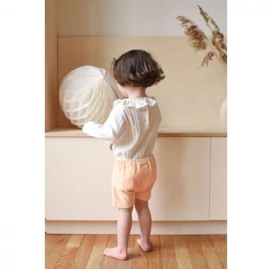 Bloomer en éponge melon, taille élastiquée avec un petit bouton décoratif en bois sur le devant. idéal pour cet été !