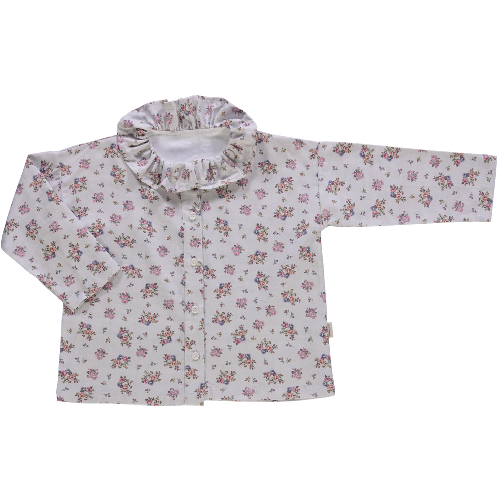 Blouse en double gaze, col volant et manches longues. 100% coton issu de l’agriculture biologique.