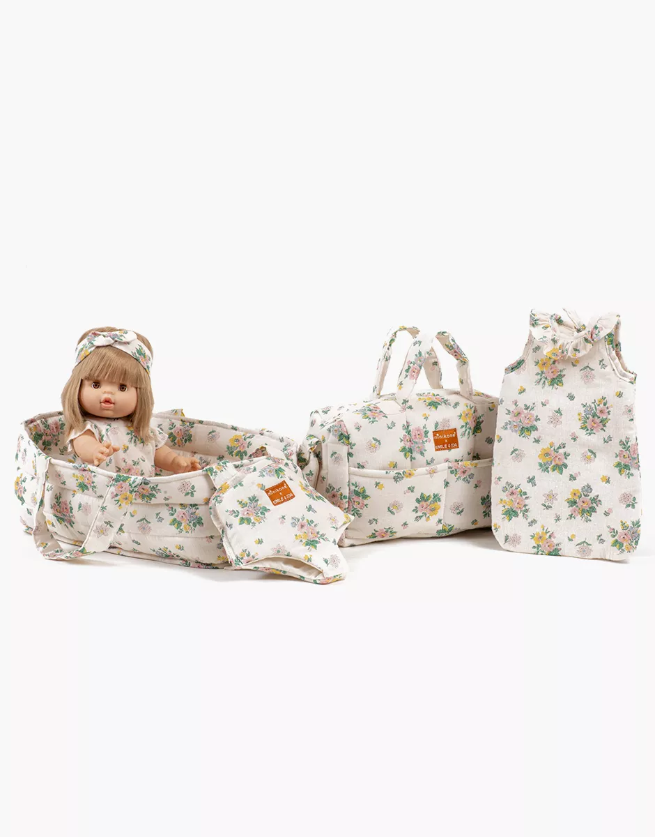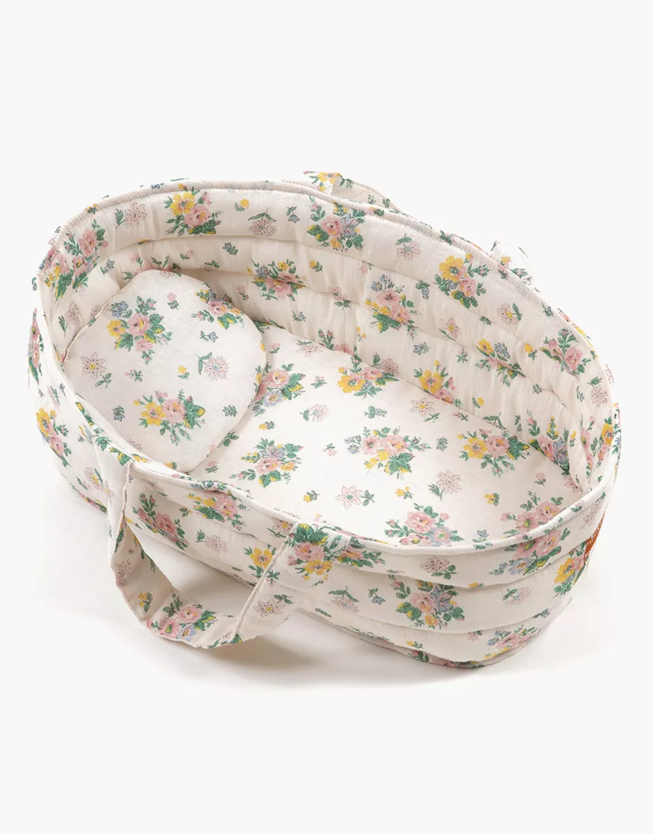 Couffin et son oreiller en coton ouatiné avec anses pour poupées et poupons. Motif exclusif Emile & Ida.