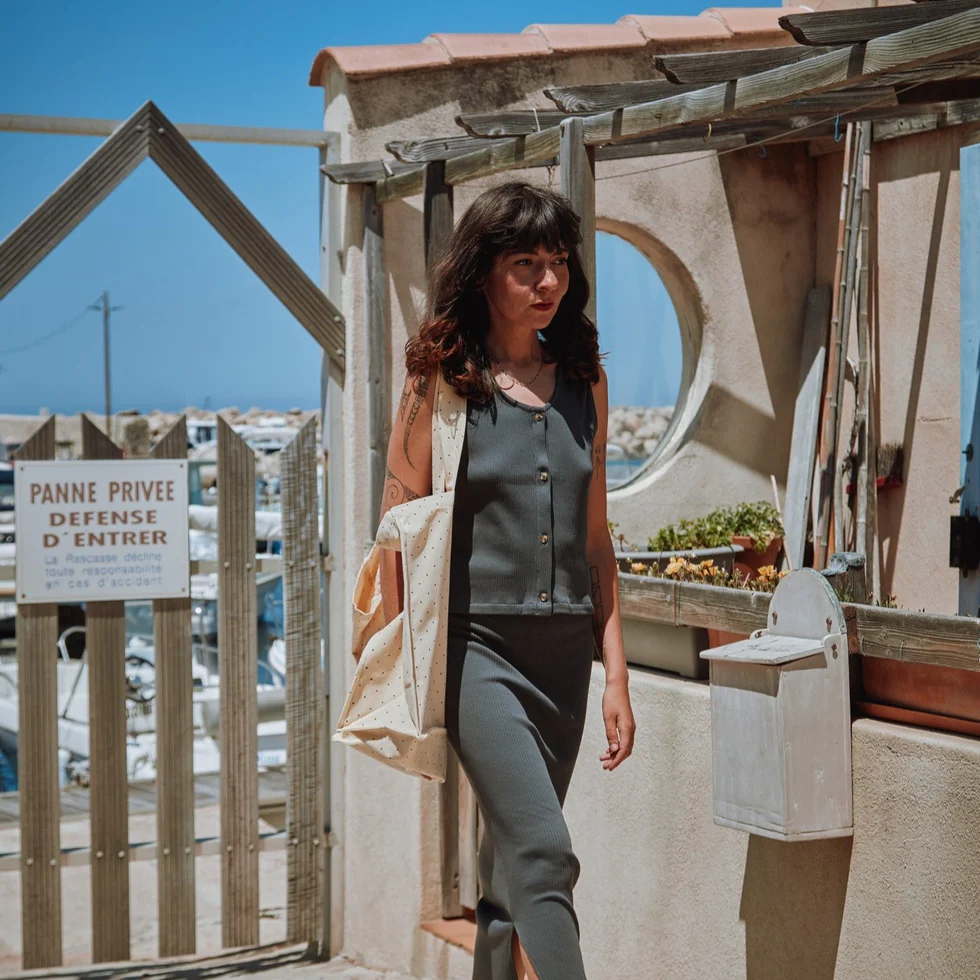 Débardeur Dille en jersey côtelé. Boutonné sur l’avant.