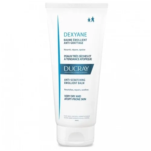 Ducray Dexyane Baume Emollient Anti-Grattage 200 ml à la texture innovante « baume au cœur huileux » est recommandé pour nourrir, réparer, apaiser les peaux très sèches à tendance atopique de toute la famille.