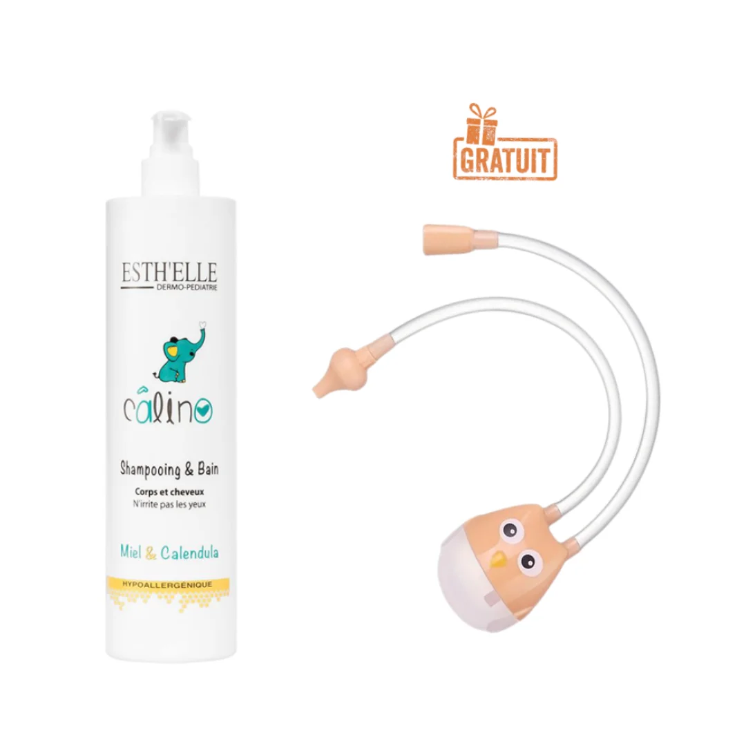 Offrez à votre bébé un moment de soin tout en douceur avec le Shampooing Corps & Cheveux ESTHELLE CALINO, accompagné d’un aspirateur nasal offert pour assurer une toilette complète et un confort respiratoire optimal.