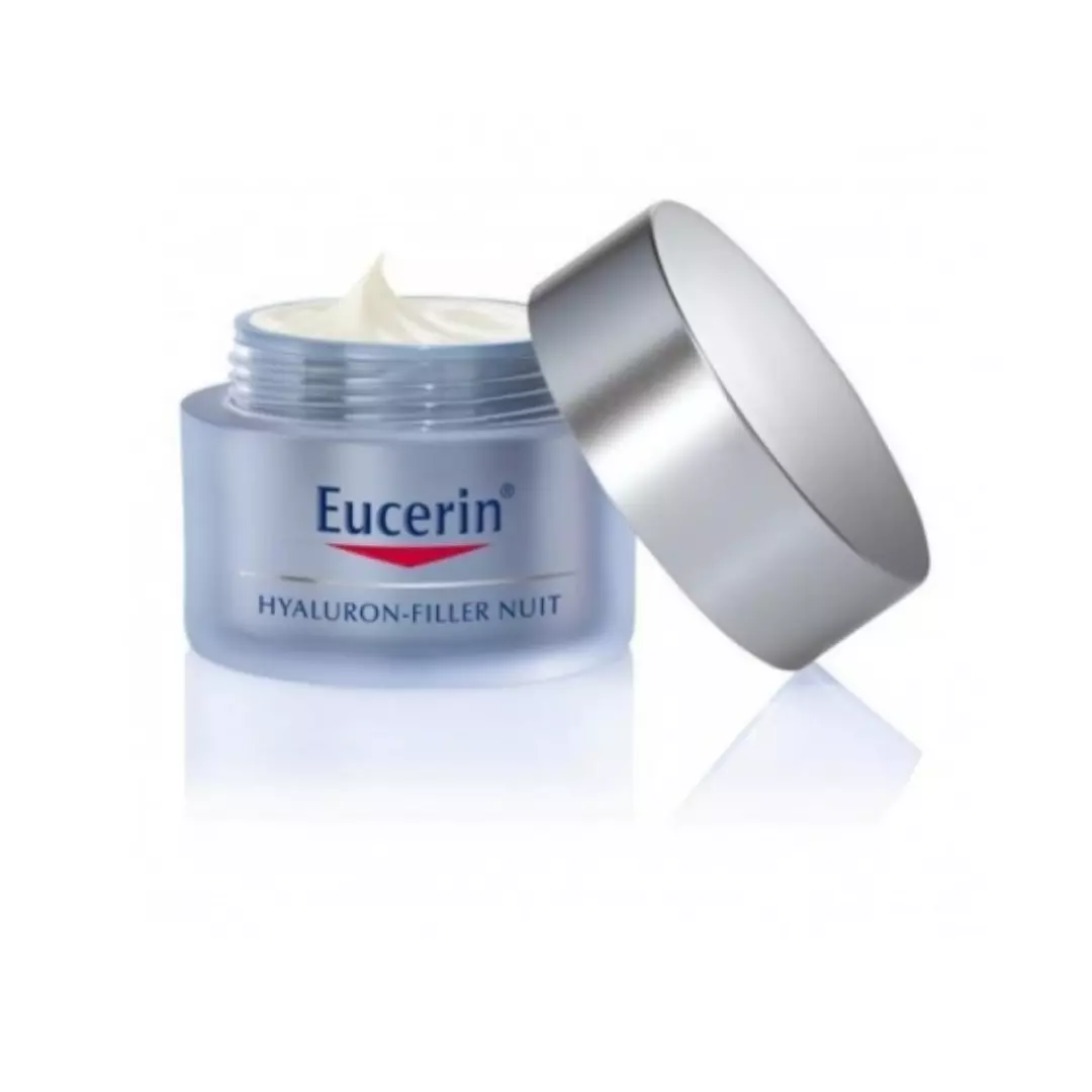 EUCERIN HYALURON FILLER Soin de Nuit Soin de nuit anti-rides enrichie en acide hyaluronique pour tous les types de peaux. Il contient deux types d’acide hyaluronique pour lutter contre les rides, même profondes, et de la saponine bioactive pour accroître la production naturelle d’acide hyaluronique.