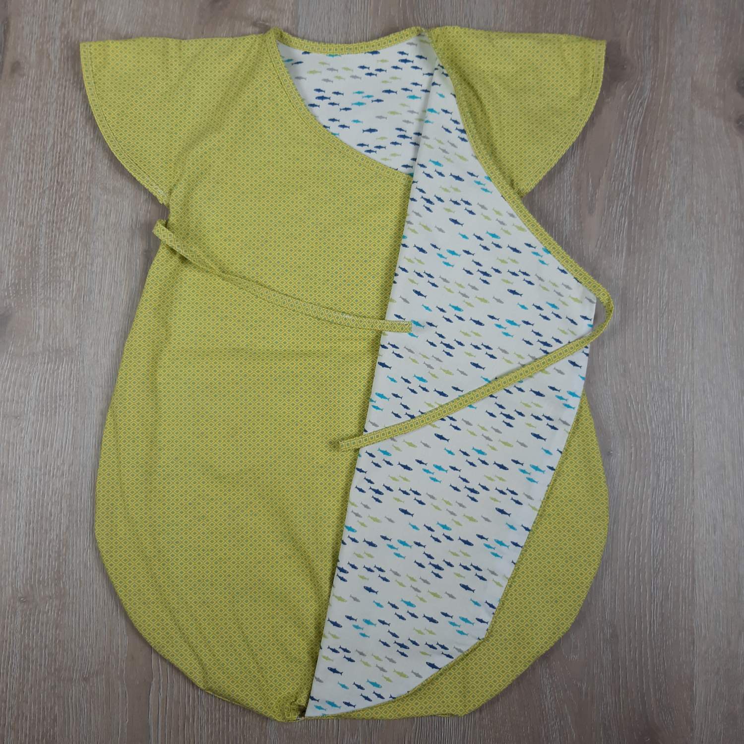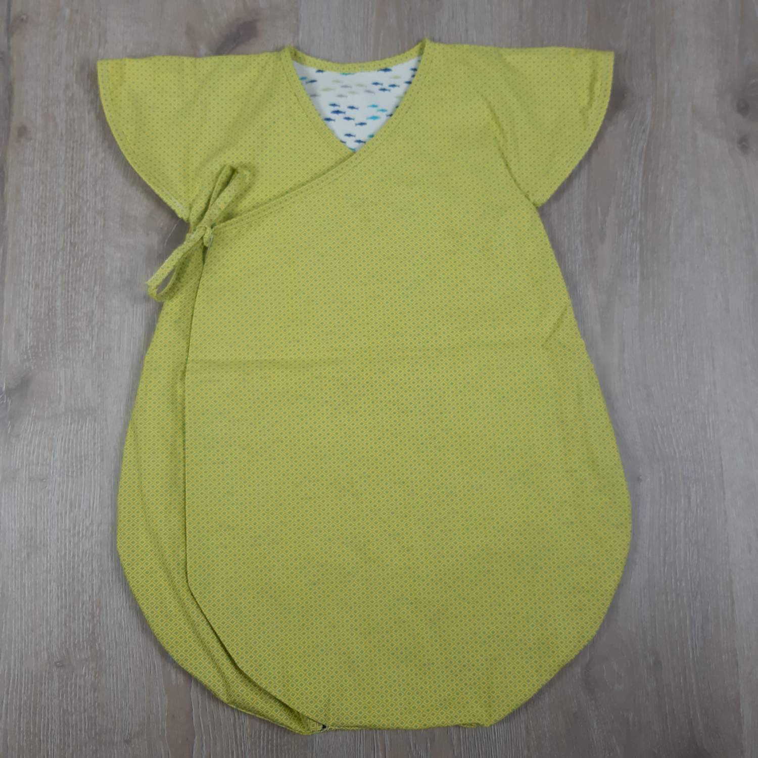 Bébé dormira confortablement et en sécurité dans cette gigoteuse, pensée pour l’été car elle n’est pas rembourrée. Il sera protégé tout en n’ ayant pas trop chaud. Réversible, elle est en 100 % coton, elle n’a pas de pressions pour plus de sécurité, fermeture avec des liens. Hauteur totale : 63 cm