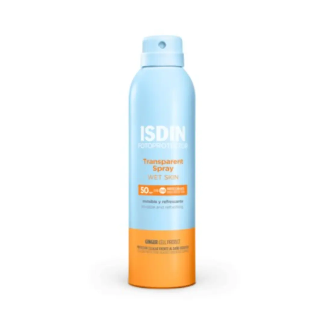 - ISDIN Fotoprotector Transparent Spray Wet Skin SPF50+ est perméable à l’eau grâce à la technologie Wetflex.