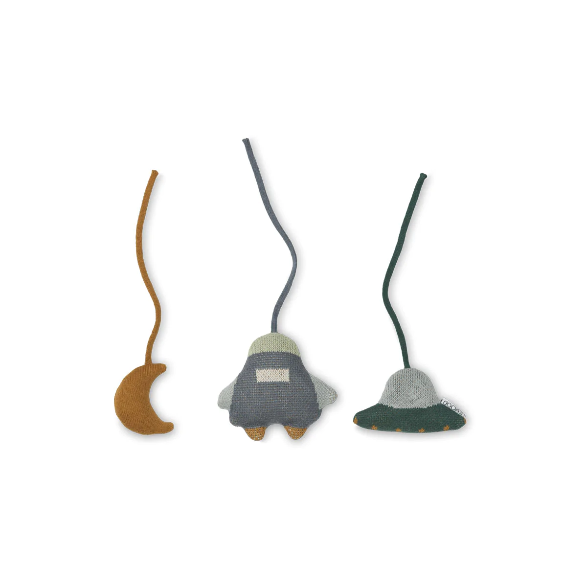 Lot de 3 jouets à suspendre Space coloris Bleu Gardez votre bébé diverti grâce aux jolis jouets à suspendre – trois jouets tricotés qui entraîneront la coordination œil-main et la spatialité de votre bébé.