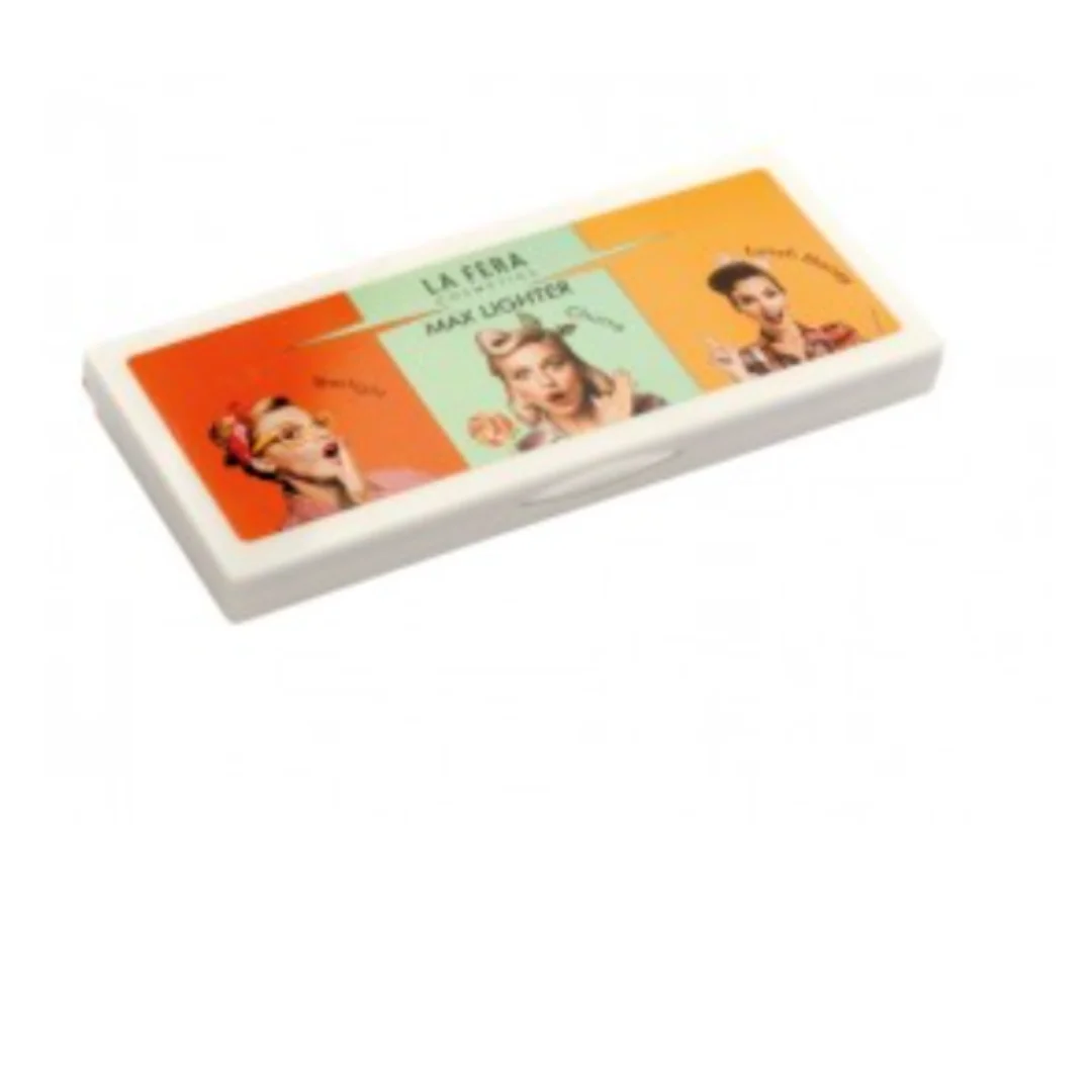 Palette highlighter en poudre de la marque LaFera. La palette Max Lighter se compose de 3 teints pour un maquillage glowy de soirée, de fête et mariage, ou d’autres occasions.