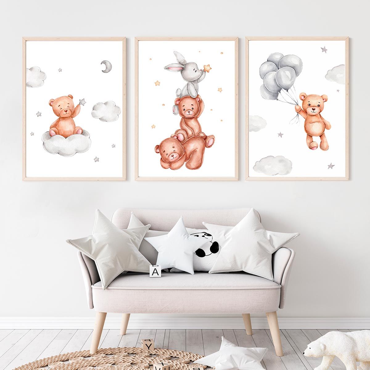 Lot de 3 affiches ourson pour bébé