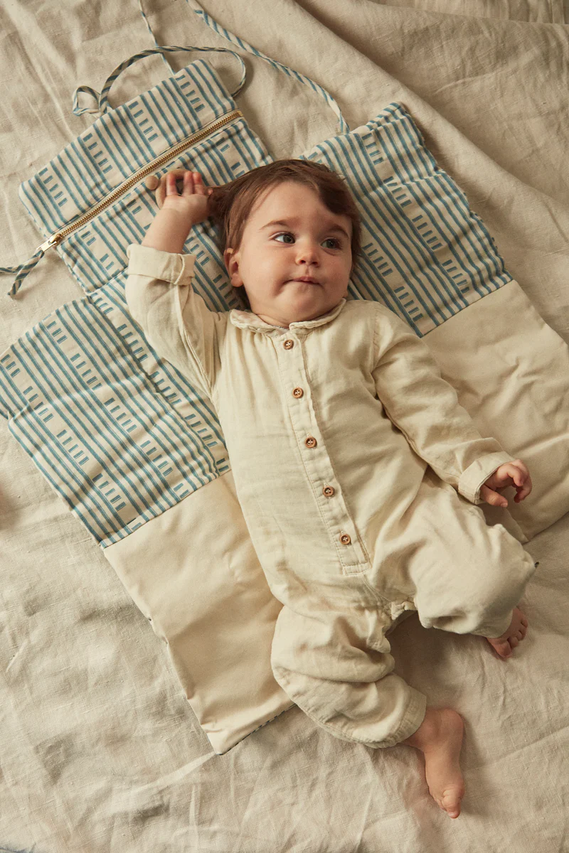 Ce matelas à langer, douillet et pratique, est le cadeau préféré des parents ! Il peut s’emmener partout. Il possède une pochette intérieure doublée en coton enduit pour y mettre le nécessaire de change.