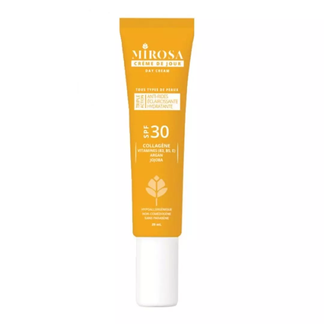 mirosa créme de jour spf30 20 ml intensément hydratante pour le visage. Sa richesse en collagène, vitamines et filtre de protection SPF 30 lui confère les propriétés de :