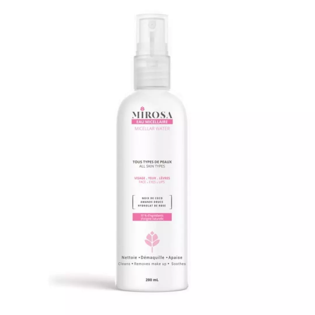 Découvrez MIROSA EAU MICELLAIRE TOUT TYPE DE PEAU 200ML disponible en tunisie ! mirosa eau micellaire 200 ml :Eau micellaire , nettoyant et démaquillant pour visage. Au Noix De Coco, Amande Douce Et Hydrolat De Rose, idéale pour tous types de peaux.