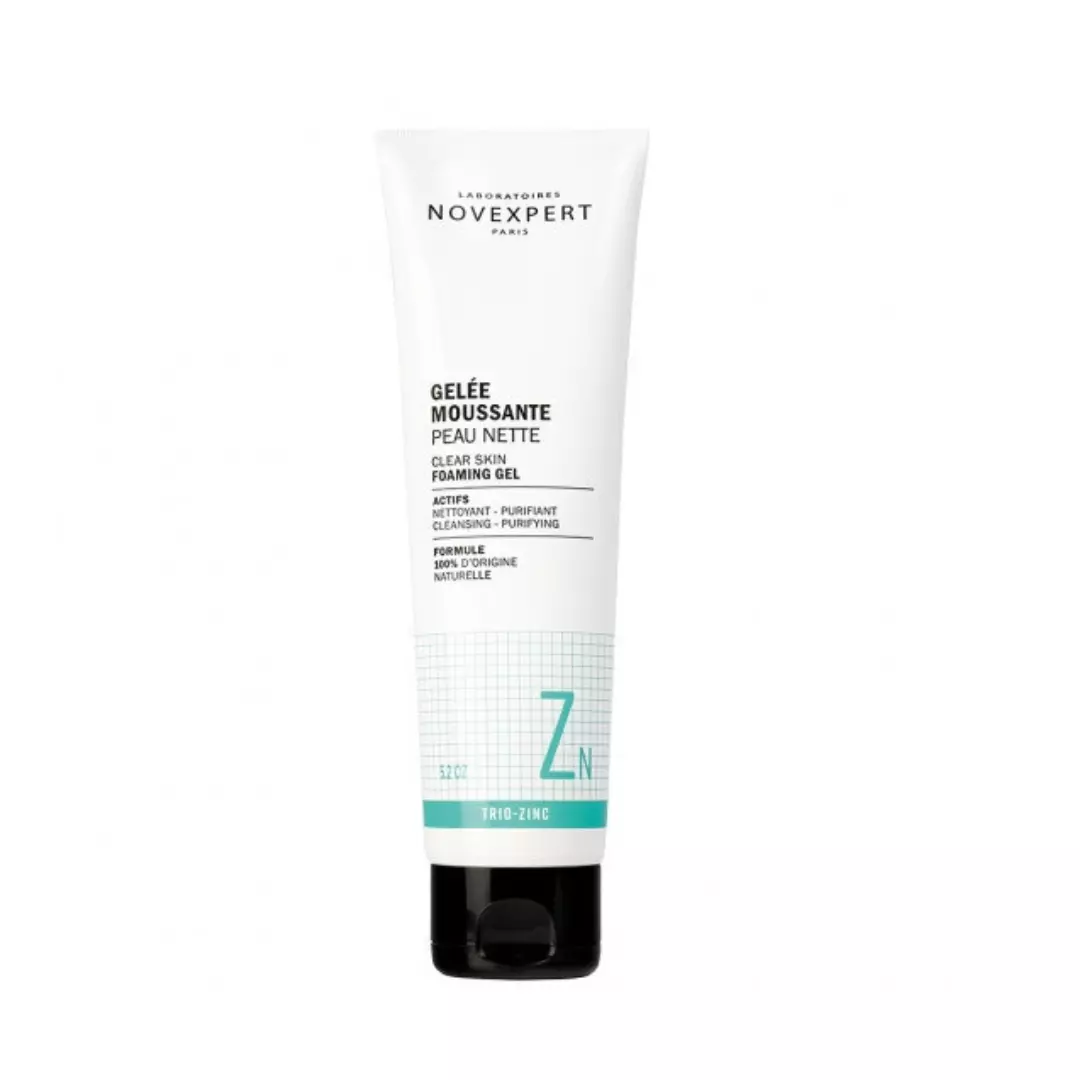 La gelée moussante nettoyante Novexpert fait partie de la dernière Gamme créée Trio-Zinc. Cette gelée moussante nettoie sans dessécher et purifie sans décaper. Elle est parfaitement adaptée aux peaux mixtes ou grasses, à imperfections occasionnelles ou récurrentes. Ce nettoyant visage bio offre 3 actions majeures combinées : nettoyant, purifiant & anti-pollution. Sa gelée ultra aérienne est 100% d’origine naturelle et laisse une peau nette et fraîche sans effet de tiraillement