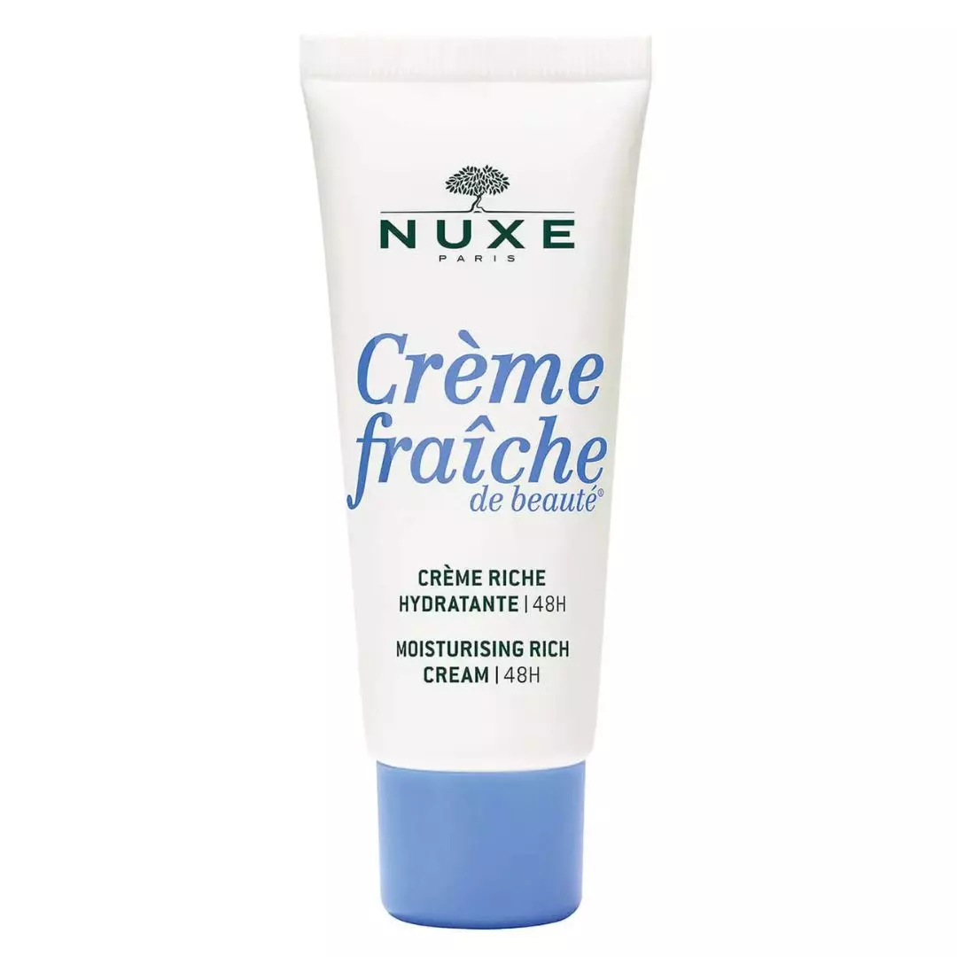 nuxe creme fraiche de beaute creme riche hydratante 30ml est une crème hydratante active pendant 48 heures, recommandée pour les peaux sèches à très sèches, même sensibles.