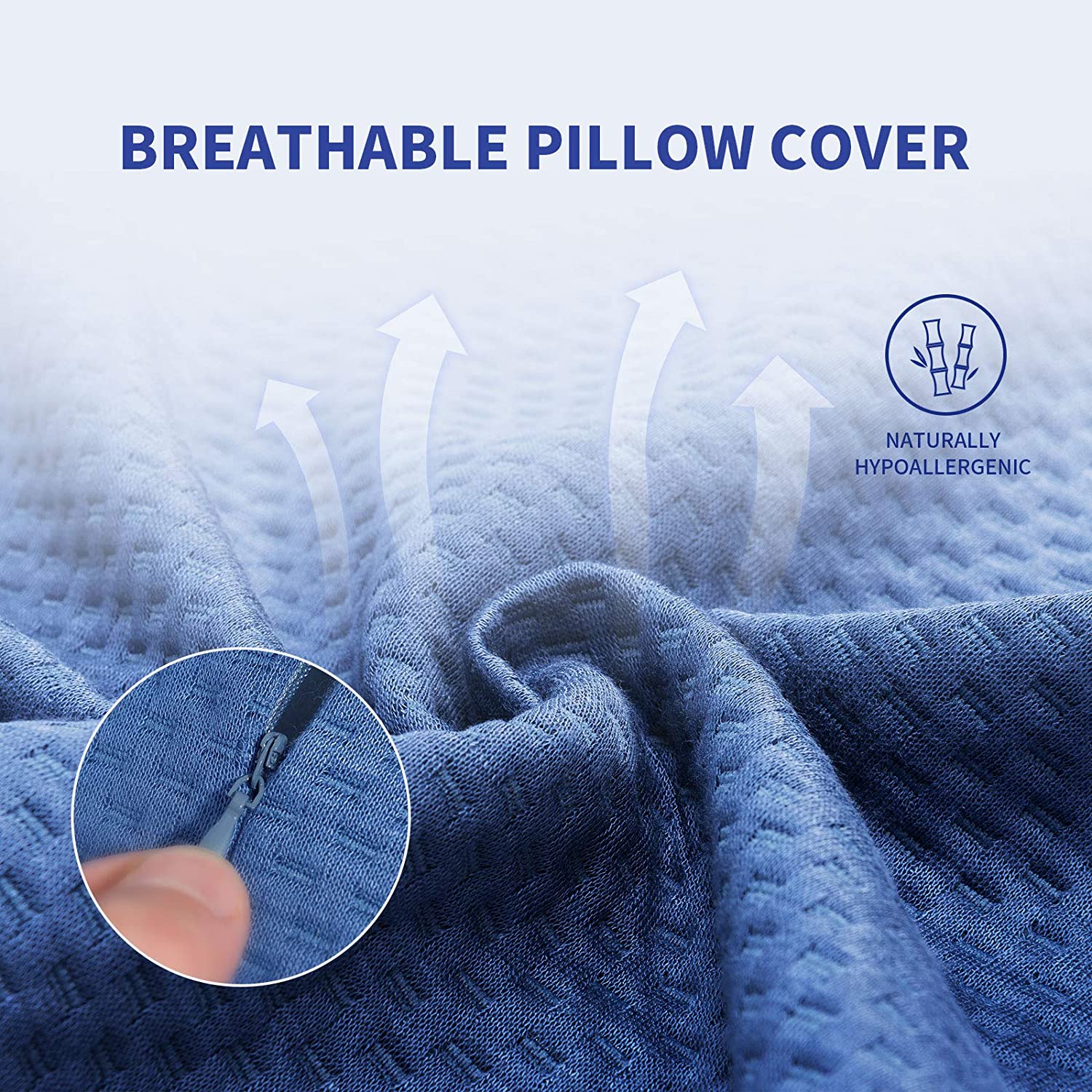 【TAIE D’OREILLER RESPIRANTE AMOVIBLE】- Notre oreiller mémoire de forme est équipé d’une housse de coussin étanche à la poussière et très respirante, qui peut rallonger efficacement la durée de vie du noyau en mousse à mémoire de forme. La housse d’oreiller lavable est faite de fibre de bambou, qui évacue l’humidité et est facile à nettoyer. Veuillez noter : la taie d’oreiller est amovible et lavable en machine, mais le noyau de l’oreiller en mousse à mémoire de forme ne peut pas être lavé.
