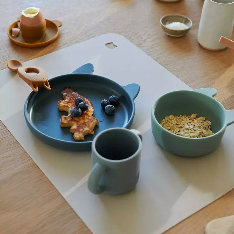 Pack de vaisselle Vivi Rabbit – Coloris : Blue Multi Mix Pack de vaisselle en silicone composé de 4 pièces. L’ensemble comprend: 1 tasse, 1 bol, 1 assiette et 1 cuillère Conçu essentiellement pour les bébés et les jeunes enfants.