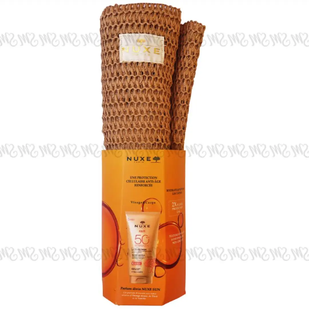 NUXE SUN Lait Fondant Haute Protection SPF 50 150ML : il protège votre peau des rayons du soleil, hydrate, prévient le photo-vieillissement cutané prématuré et l’apparition des taches. Sa texture fondante ne laisse pas de film blanc et glisse sur votre peau avec volupté pour une véritable sensation de confort. NUXE Body Rêve de Thé Gelée de Douche 200ML OFFERTE : est un gel douche luxueux qui aide la peau à etre propre, confortable et douce tout en en délicatesse. La texture de NUXE Gelée de Douche, fondante à l’irrésistible parfum de Thé vert se transforme en une fine mousse…