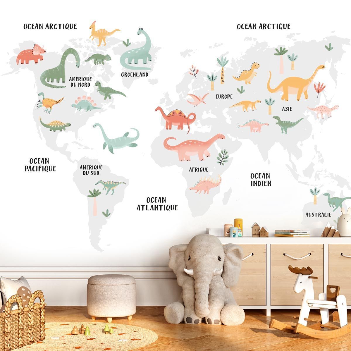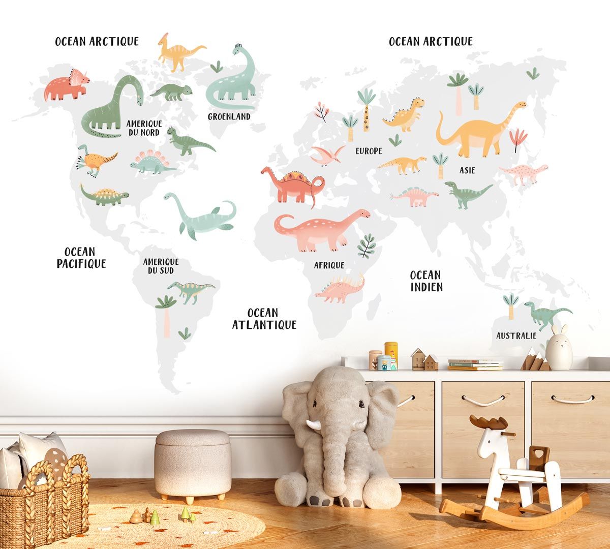 Caractéristiques de notre papier peint carte du monde dinosaures