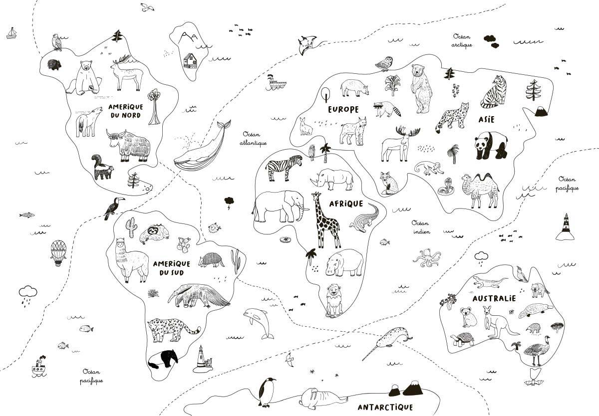 Caractéristiques de notre papier peint carte du monde enfant noir & blanc