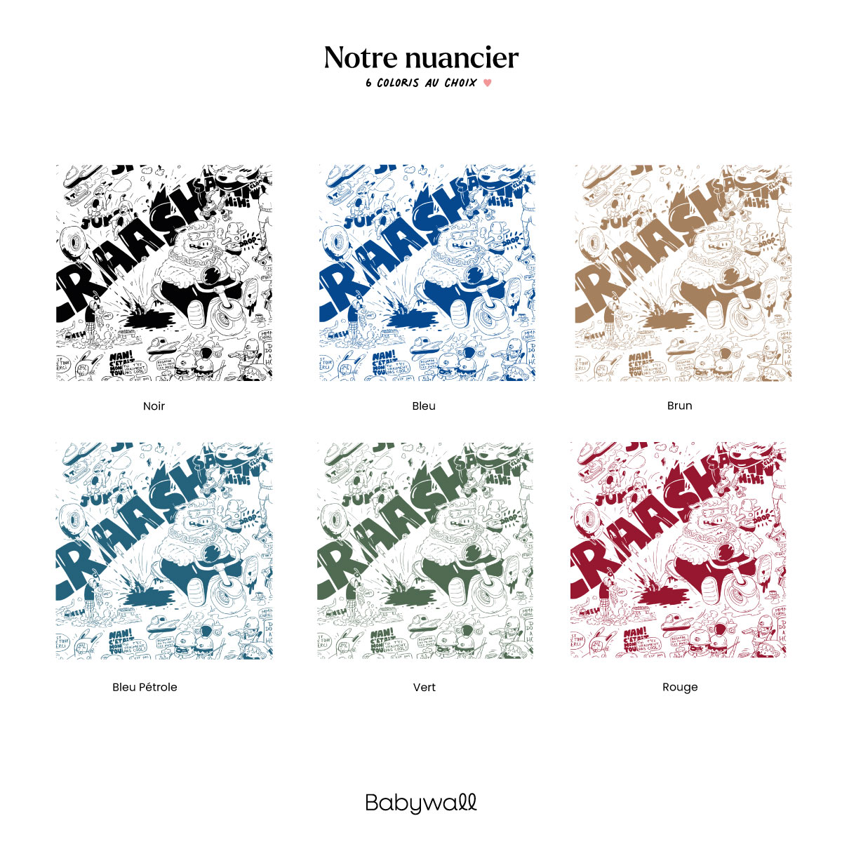 Disponible dans une palette de couleurs intenses (bleu, bleu pétrole, marron, vert, rouge), ce papier peint ado transforme chaque mur en une planche de comics grandeur nature, parfaite pour un intérieur original et plein de caractère.