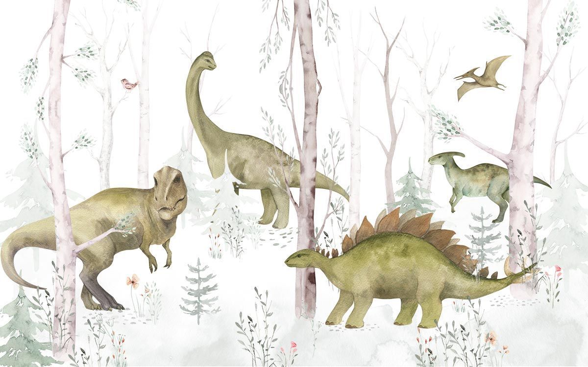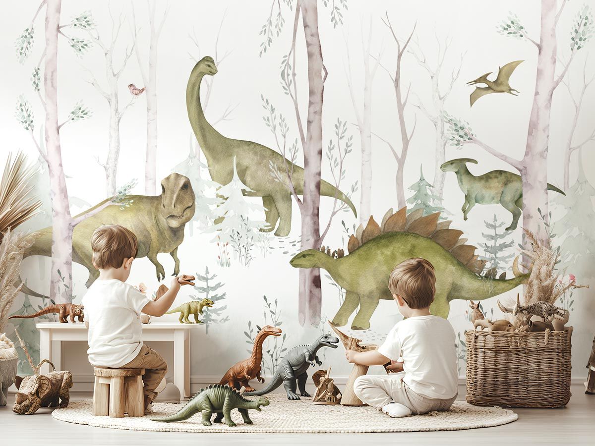 Papier Peint Dinosaures Légendaires : Une Aventure Préhistorique en Aquarelle