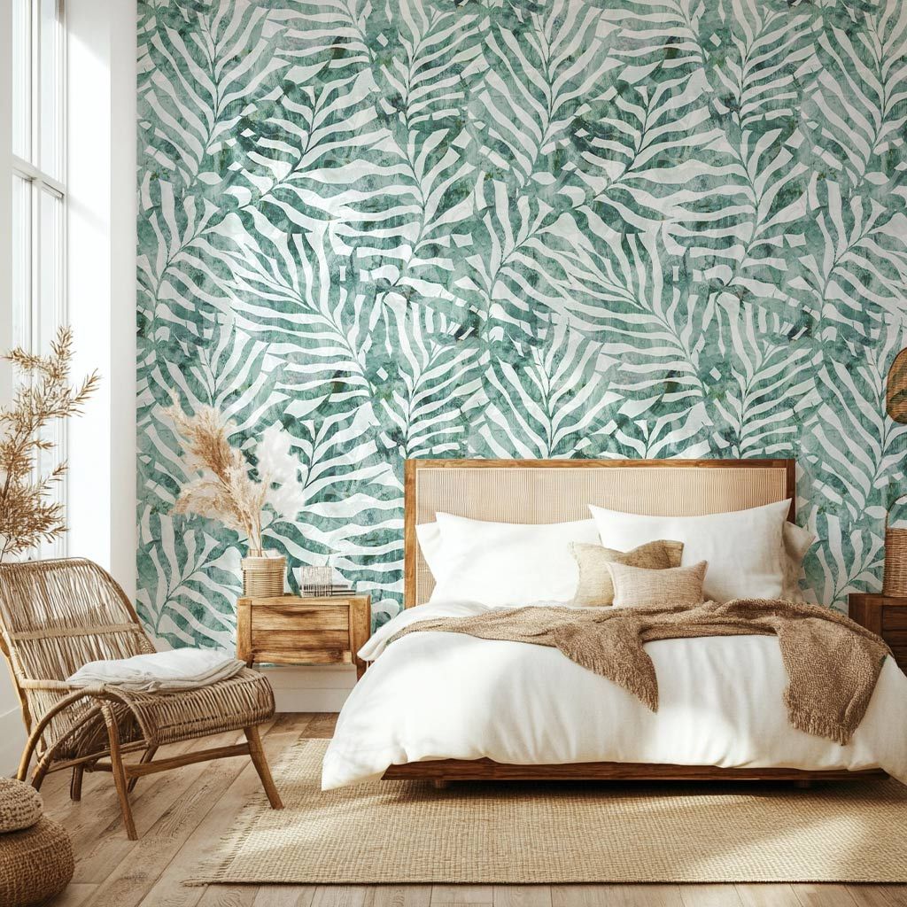 Décliné dans des tons verts et bleus menthe, ce papier peint feuillage s’adapte parfaitement à de nombreux styles d’intérieur. Il convient aussi bien à une chambre adulte élégante et naturelle, qu’à une chambre d’enfant apaisante, ou encore à un salon lumineux et moderne.