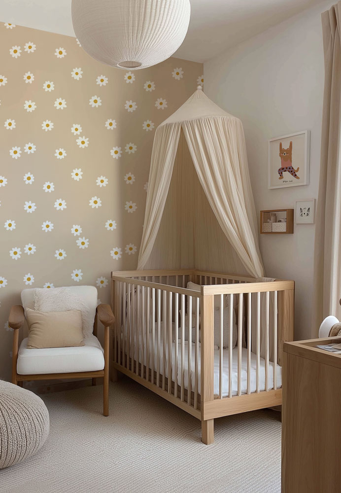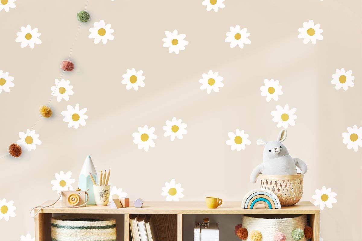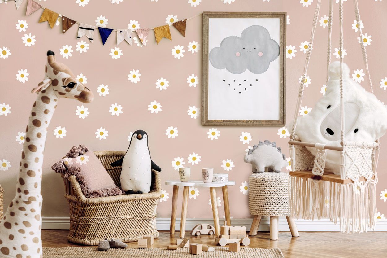 Véritable tendance du moment, ce papier peint fait partie de nos coups de coeur pour une chambre de petite fille. Ce motif simple et élégant met en valeur des marguerites réparties de manière irrégulière, créant une ambiance chaleureuse et douce. Disponible en trois teintes douces – beige, rose ou vert – ce papier peint peut être utilisé pour habiller tout un pan de mur ou en demi-mur en bas ou en haut, offrant ainsi de multiples possibilités déco pour vos chambres d’enfant.