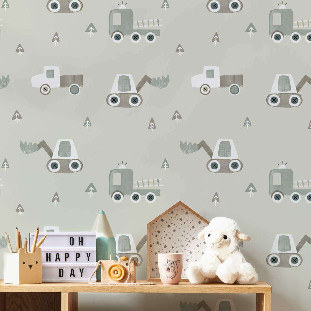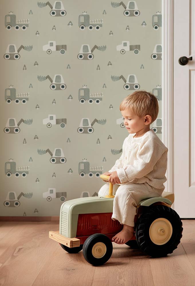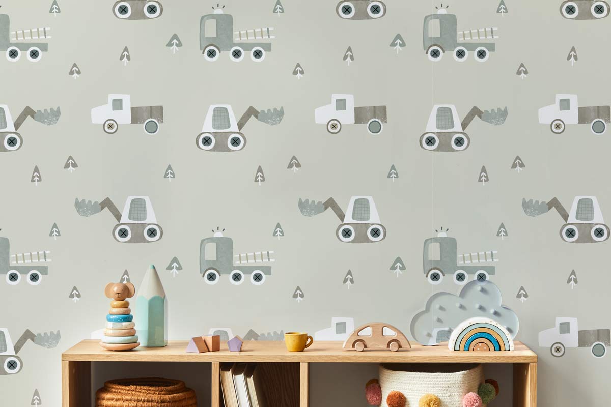 Papier peint petits camions de chantier pour enfant