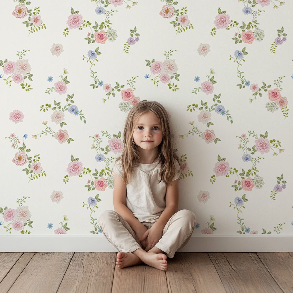 Parfait pour instaurer une ambiance douce et apaisante, ce papier peint bébé s’adapte idéalement à une chambre fille, une chambre d’enfant ou tout autre espace que vous souhaitez embellir avec une note florale délicate.