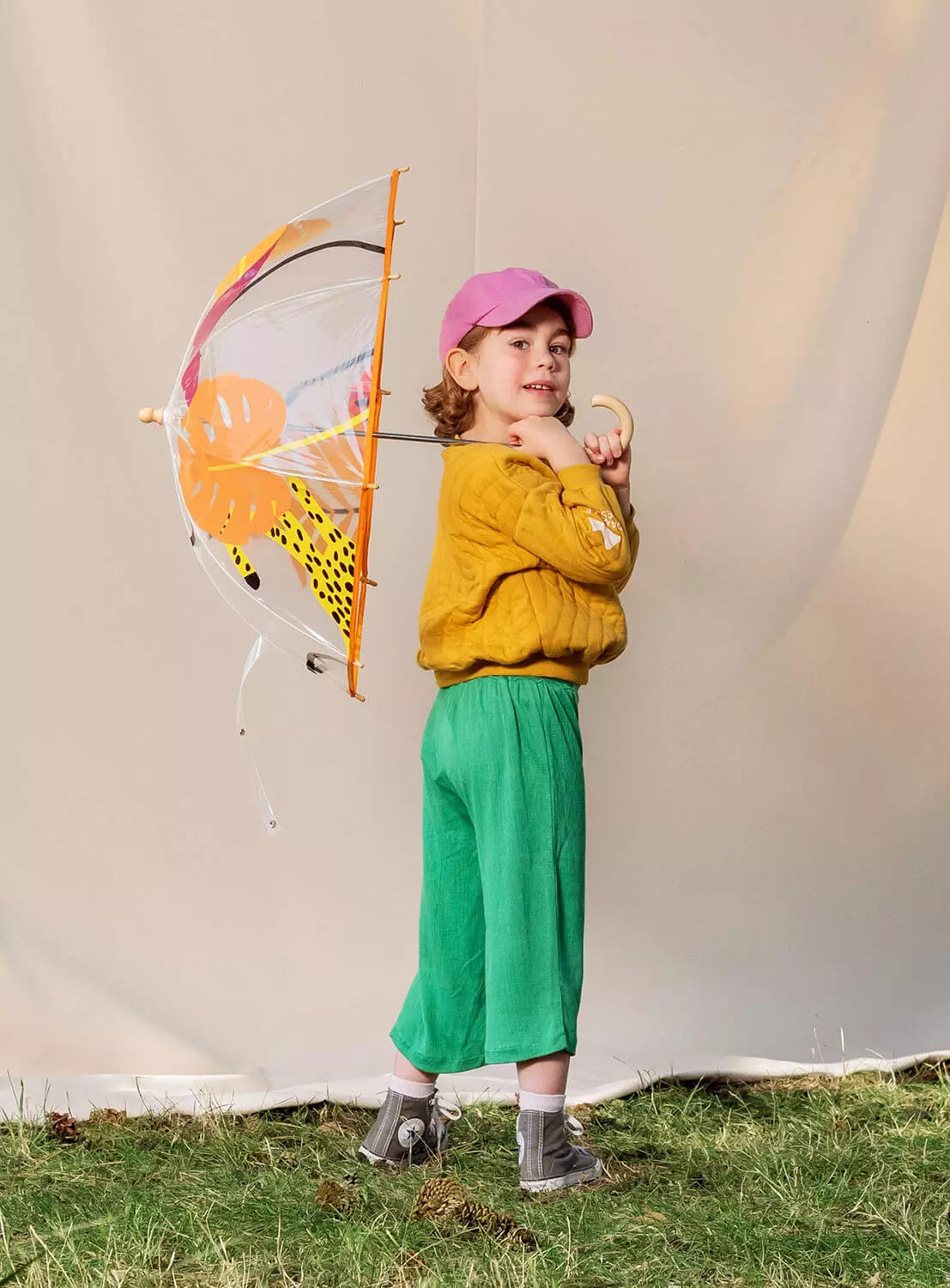 Ce parapluie enfant transparent est fun avec sa cloche imprimée. Le système d’ouverture et de fermeture anti-pincement permet à votre enfant d’utiliser son parapluie en autonomie et en toute sécurité.
