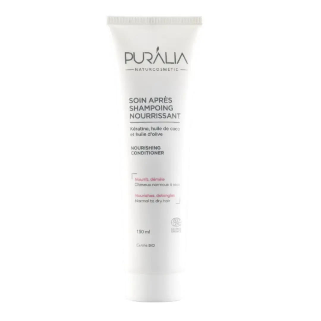 Sans silicone et spécifiquement formulé pour prendre soin des cheveux secs ou normaux, le Soin Après Shampoing nourrissant PURALIA est enrichie en huile de coco, huile d’olive et kératine aux vertus nutritives et adoucissantes, pour une chevelure parfaitement démêlée tout en légèreté.