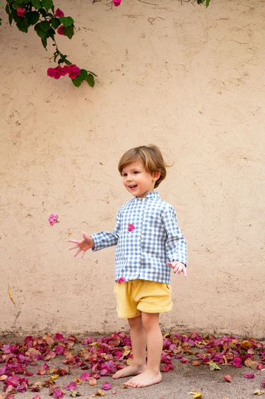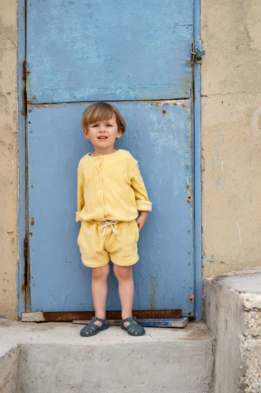Inspiré des short de tennis vintage, ce petit short en éponge coloris Soleil illumine le dressing d’été de vos enfants.