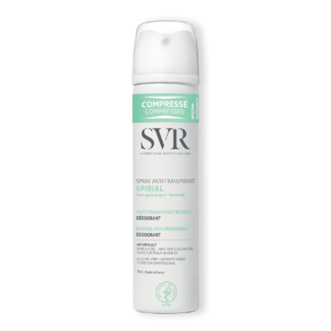 SVR SPIRIAL SPRAY DEODORANT ANTI TRANSPIRANT 75ML Déodorant, format compressé, à l’efficacité anti-transpirante intense 48h(1) même en situations extrêmes (sport, stress…). Formulé avec une haute concentration en agents sudo-régulateurs, il régule la transpiration, absorbe l’humidité et lutte contre les mauvaises odeurs dans la plus haute tolérance. Son fini sec immédiat laisse place à une peau douce […]