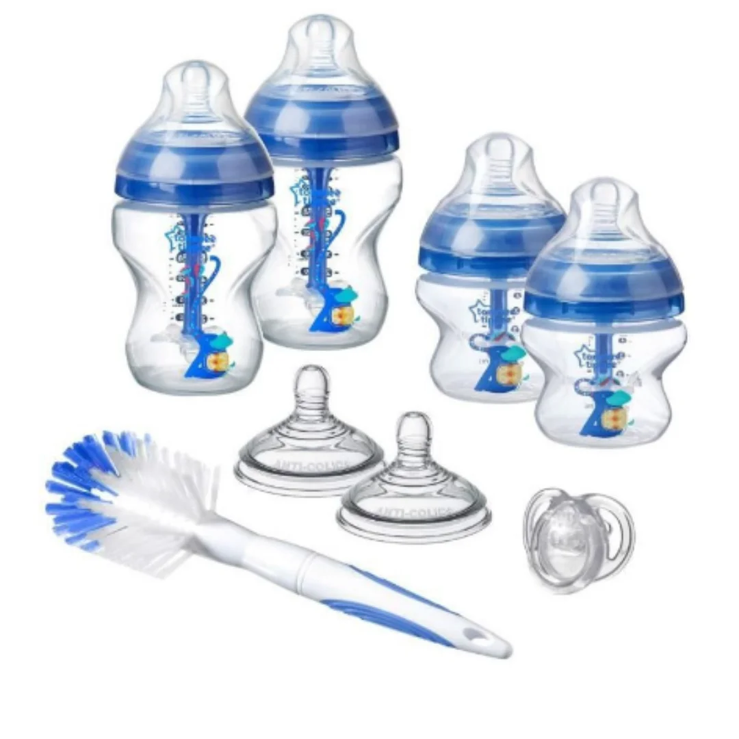 TOMMEE TIPPEE ADVANCED ANTI COLIQUE KIT DE NAISSANCE BLEU contient : 2 biberons 150 ml avec tétine débit lent 2 biberons 260 ml avec tétine à débit lent 2 tétines à débit moyen 1 goupillon (pour biberon et tétine) 1 sucette 0-6 mois Caracterestiques des biberons advanced…