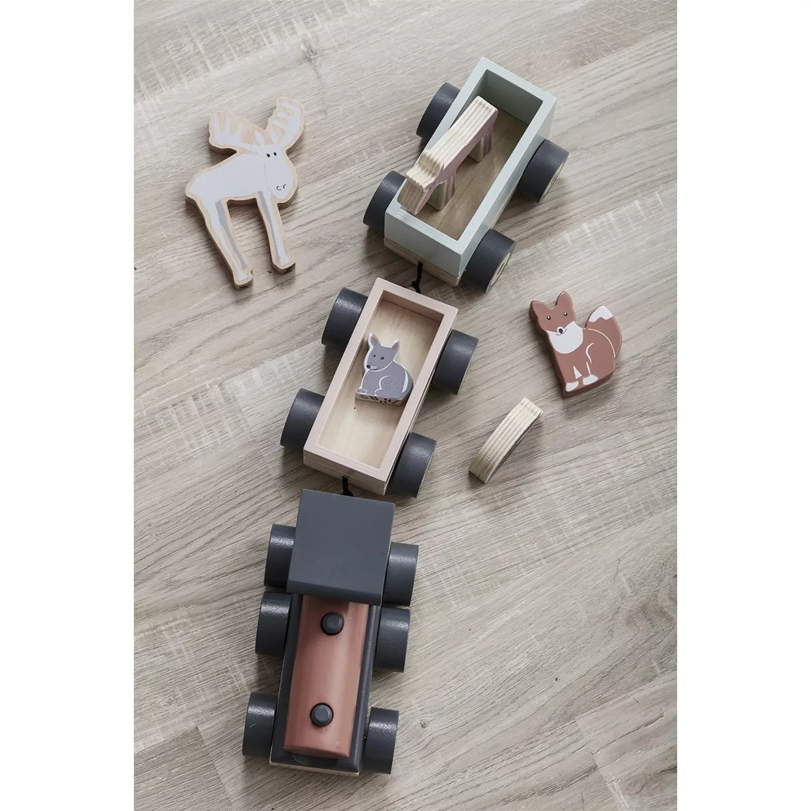 Train en bois et animaux