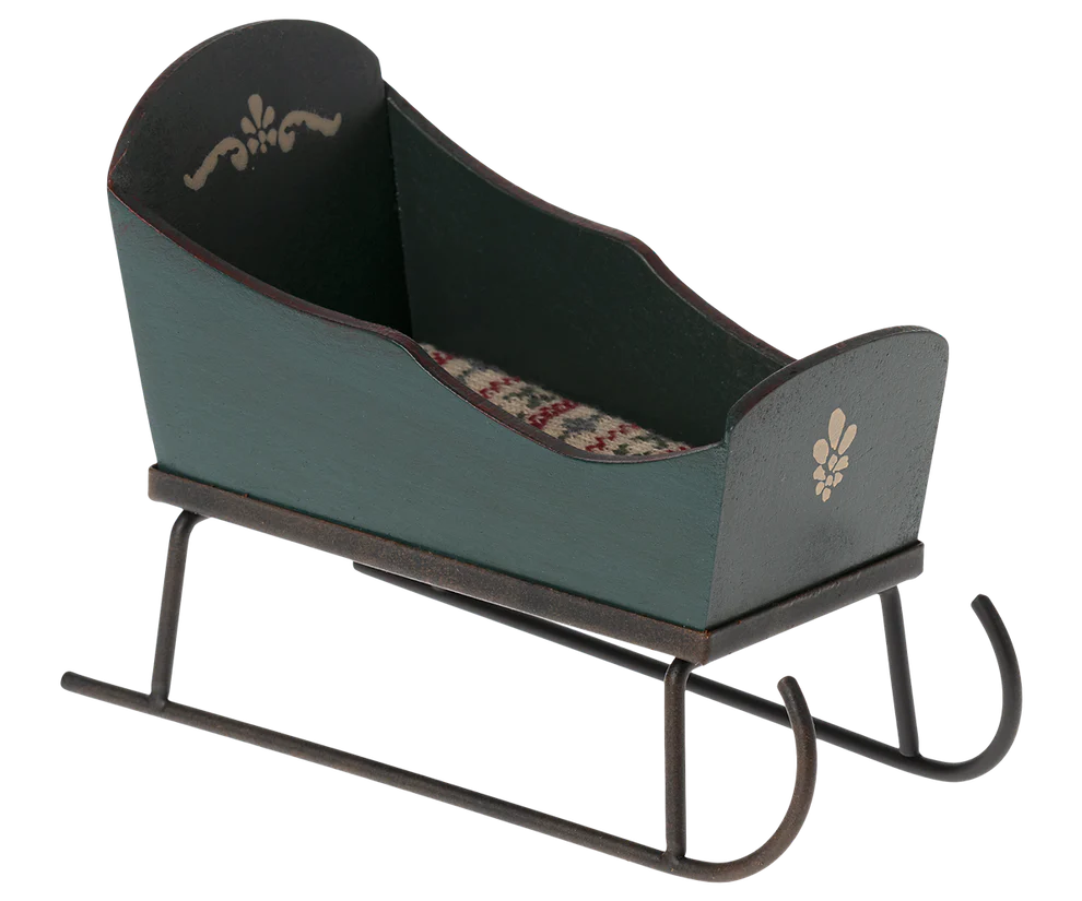 Un joli traineau avec un doux matelas qui gardera ses passagers au chaud durant le trajet. Cette luge convient aux souris. Il présente de jolis détails peints à la main et peut donc subir des variations.